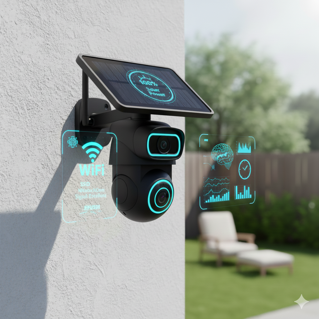 Funciona sin cables ni enchufes. Conexión WiFi estable, visión nocturna y energía solar para vigilancia continua 24/7.